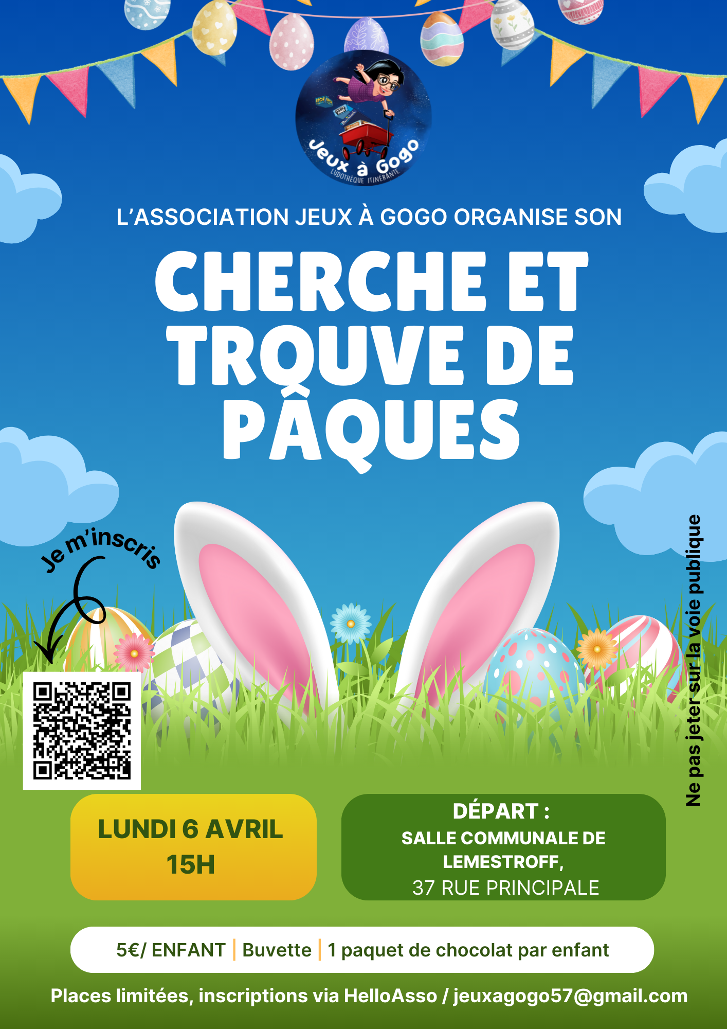 ⚠️ Inscriptions obligatoires (places limitées) https://www.helloasso.com/associations/jeux-a-gogo/evenements/cherche-et-trouve-de-paques